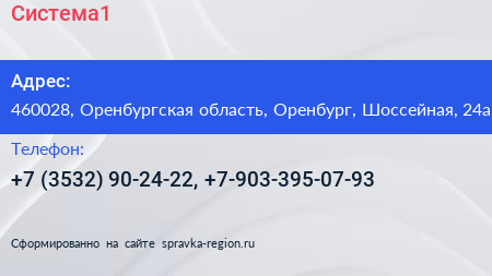 Система1 по адресу 460028, Оренбургская область, Оренбург, Шоссейная, 24а в дальнейшем Организация, размещена в следующих категориях: