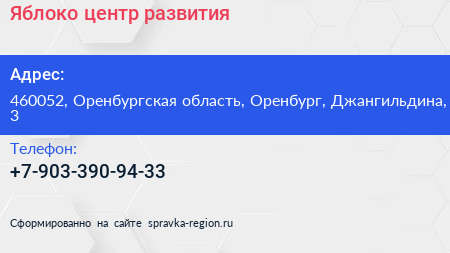 Яблоко, центр развития по адресу 460052, Оренбургская область, Оренбург, Джангильдина, 3 в дальнейшем Организация, размещена в следующих категориях: