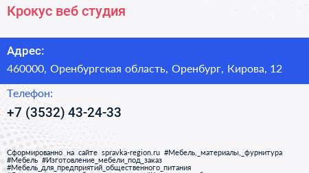 Крокус, веб-студия по адресу 460000, Оренбургская область, Оренбург, Кирова, 12 в дальнейшем Организация, размещена в следующих категориях: