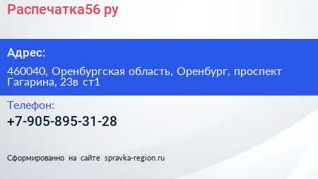 Распечатка56.ру по адресу 460040, Оренбургская область, Оренбург, проспект Гагарина, 23в ст1 в дальнейшем Организация, размещена в следующих категориях: