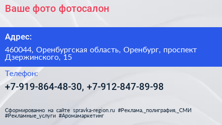 Ваше фото, фотосалон по адресу 460044, Оренбургская область, Оренбург, проспект Дзержинского, 15 в дальнейшем Организация, размещена в следующих категориях: