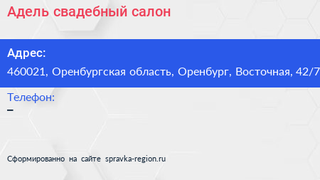 Адель, свадебный салон по адресу 460021, Оренбургская область, Оренбург, Восточная, 42/7 в дальнейшем Организация, размещена в следующих категориях: