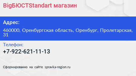 BigБЮСТStandart, магазин по адресу 460000, Оренбургская область, Оренбург, Пролетарская, 31 в дальнейшем Организация, размещена в следующих категориях: