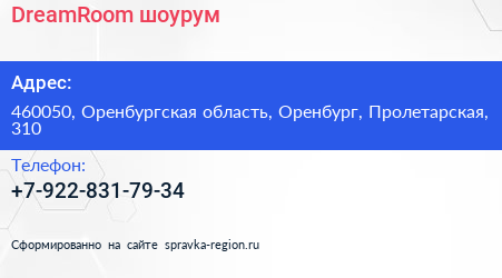 DreamRoom, шоурум по адресу 460050, Оренбургская область, Оренбург, Пролетарская, 310 в дальнейшем Организация, размещена в следующих категориях:
