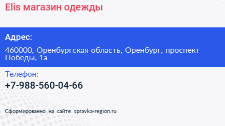 Elis, магазин одежды по адресу 460000, Оренбургская область, Оренбург, проспект Победы, 1а в дальнейшем Организация, размещена в следующих категориях: