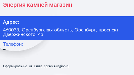 Энергия камней, магазин по адресу 460038, Оренбургская область, Оренбург, проспект Дзержинского, 4а в дальнейшем Организация, размещена в следующих категориях: