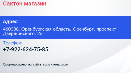 Сактон, магазин по адресу 460038, Оренбургская область, Оренбург, проспект Дзержинского, 26 в дальнейшем Организация, размещена в следующих категориях: