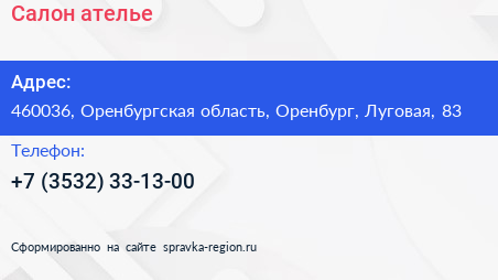 Салон-ателье по адресу 460036, Оренбургская область, Оренбург, Луговая, 83 в дальнейшем Организация, размещена в следующих категориях: