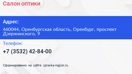 Салон оптики по адресу 460044, Оренбургская область, Оренбург, проспект Дзержинского, 9 в дальнейшем Организация, размещена в следующих категориях: