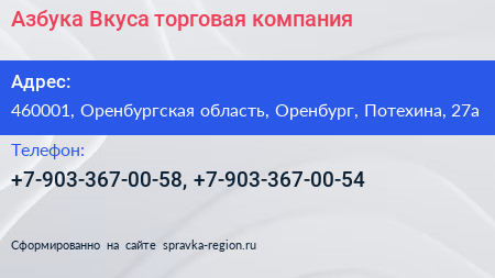 Азбука Вкуса, торговая компания по адресу 460001, Оренбургская область, Оренбург, Потехина, 27а в дальнейшем Организация, размещена в следующих категориях: