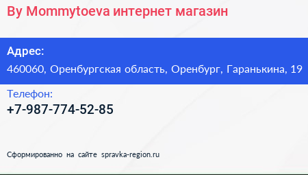By Mommytoeva, интернет-магазин по адресу 460060, Оренбургская область, Оренбург, Гаранькина, 19 в дальнейшем Организация, размещена в следующих категориях: