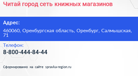 Читай-город, сеть книжных магазинов по адресу 460060, Оренбургская область, Оренбург, Салмышская, 71 в дальнейшем Организация, размещена в следующих категориях: