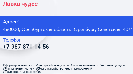 Лавка чудес по адресу 460000, Оренбургская область, Оренбург, Советская, 40/1 в дальнейшем Организация, размещена в следующих категориях: