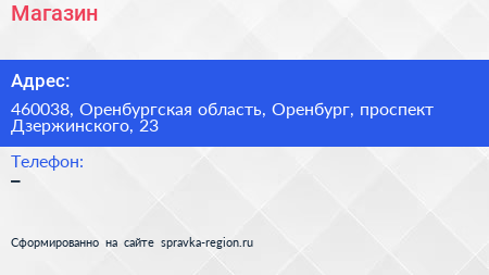 Магазин по адресу 460038, Оренбургская область, Оренбург, проспект Дзержинского, 23 в дальнейшем Организация, размещена в следующих категориях: