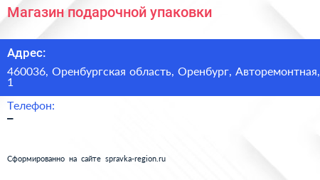 Магазин подарочной упаковки по адресу 460036, Оренбургская область, Оренбург, Авторемонтная, 1 в дальнейшем Организация, размещена в следующих категориях: