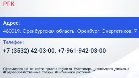 РГК по адресу 460019, Оренбургская область, Оренбург, Энергетиков, 7 в дальнейшем Организация, размещена в следующих категориях: