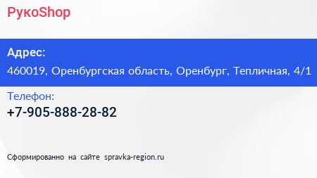 РукоShop по адресу 460019, Оренбургская область, Оренбург, Тепличная, 4/1 в дальнейшем Организация, размещена в следующих категориях: