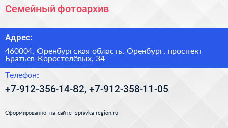 Семейный фотоархив по адресу 460004, Оренбургская область, Оренбург, проспект Братьев Коростелёвых, 34 в дальнейшем Организация, размещена в следующих категориях: