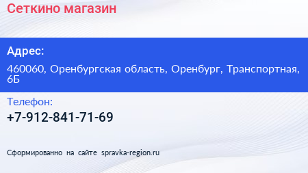 Сеткино, магазин по адресу 460060, Оренбургская область, Оренбург, Транспортная, 6Б в дальнейшем Организация, размещена в следующих категориях: