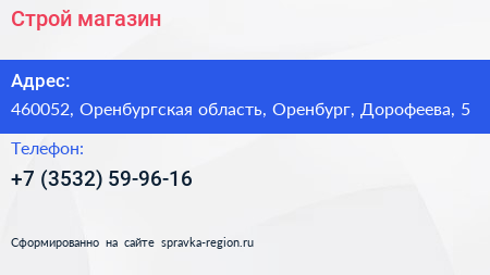 Строй!, магазин по адресу 460052, Оренбургская область, Оренбург, Дорофеева, 5 в дальнейшем Организация, размещена в следующих категориях: