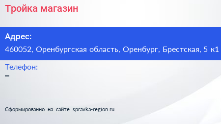 Тройка, магазин по адресу 460052, Оренбургская область, Оренбург, Брестская, 5 к1 в дальнейшем Организация, размещена в следующих категориях: