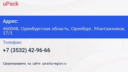 uPack по адресу 460048, Оренбургская область, Оренбург, Монтажников, 17/1 в дальнейшем Организация, размещена в следующих категориях: