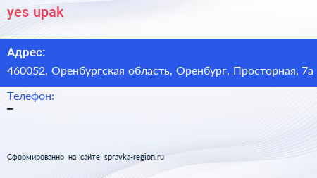 yes-upak по адресу 460052, Оренбургская область, Оренбург, Просторная, 7а в дальнейшем Организация, размещена в следующих категориях: