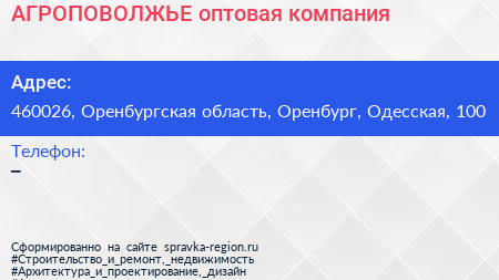 АГРОПОВОЛЖЬЕ, оптовая компания по адресу 460026, Оренбургская область, Оренбург, Одесская, 100 в дальнейшем Организация, размещена в следующих категориях: