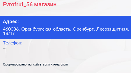 Evrofrut_56, магазин по адресу 460036, Оренбургская область, Оренбург, Лесозащитная, 18/1г в дальнейшем Организация, размещена в следующих категориях:
