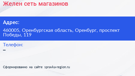 Желен, сеть магазинов по адресу 460005, Оренбургская область, Оренбург, проспект Победы, 119 в дальнейшем Организация, размещена в следующих категориях: