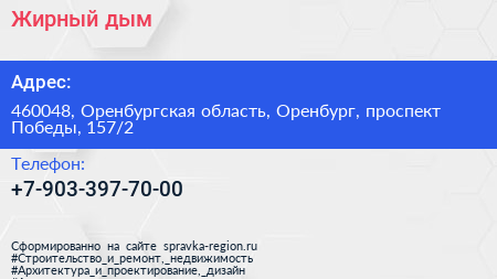 Жирный дым по адресу 460048, Оренбургская область, Оренбург, проспект Победы, 157/2 в дальнейшем Организация, размещена в следующих категориях: