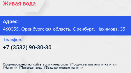 Живая вода по адресу 460055, Оренбургская область, Оренбург, Нахимова, 35 в дальнейшем Организация, размещена в следующих категориях: