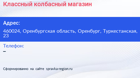 Классный колбасный, магазин по адресу 460024, Оренбургская область, Оренбург, Туркестанская, 23 в дальнейшем Организация, размещена в следующих категориях: