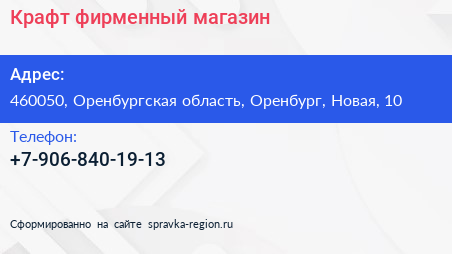 Крафт, фирменный магазин по адресу 460050, Оренбургская область, Оренбург, Новая, 10 в дальнейшем Организация, размещена в следующих категориях: