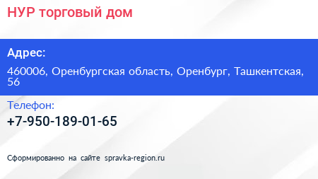 НУР, торговый дом по адресу 460006, Оренбургская область, Оренбург, Ташкентская, 56 в дальнейшем Организация, размещена в следующих категориях:
