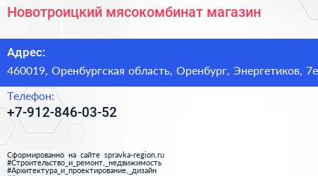 Новотроицкий мясокомбинат, магазин по адресу 460019, Оренбургская область, Оренбург, Энергетиков, 7е в дальнейшем Организация, размещена в следующих категориях:
