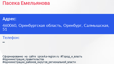 Пасека Емельянова по адресу 460060, Оренбургская область, Оренбург, Салмышская, 51 в дальнейшем Организация, размещена в следующих категориях: