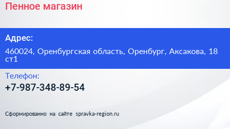 Пенное, магазин по адресу 460024, Оренбургская область, Оренбург, Аксакова, 18 ст1 в дальнейшем Организация, размещена в следующих категориях: