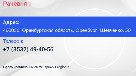 Рачевня№1 по адресу 460036, Оренбургская область, Оренбург, Шевченко, 50 в дальнейшем Организация, размещена в следующих категориях: