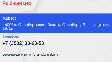 Рыбный цех по адресу 460036, Оренбургская область, Оренбург, Лесозащитная, 18/1в в дальнейшем Организация, размещена в следующих категориях: