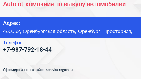 Autolot, компания по выкупу автомобилей по адресу 460052, Оренбургская область, Оренбург, Просторная, 11 в дальнейшем Организация, размещена в следующих категориях: