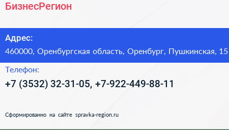 БизнесРегион по адресу 460000, Оренбургская область, Оренбург, Пушкинская, 15 в дальнейшем Организация, размещена в следующих категориях: