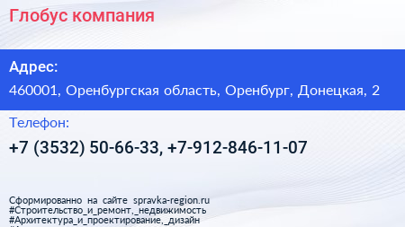 Глобус, компания по адресу 460001, Оренбургская область, Оренбург, Донецкая, 2 в дальнейшем Организация, размещена в следующих категориях: