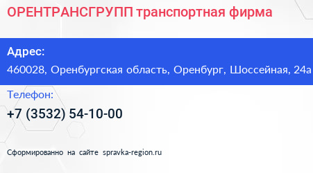 ОРЕНТРАНСГРУПП, транспортная фирма по адресу 460028, Оренбургская область, Оренбург, Шоссейная, 24а в дальнейшем Организация, размещена в следующих категориях: