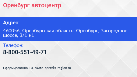 Оренбург, автоцентр по адресу 460056, Оренбургская область, Оренбург, Загородное шоссе, 3/1 к1 в дальнейшем Организация, размещена в следующих категориях: