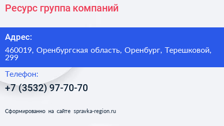 Ресурс, группа компаний по адресу 460019, Оренбургская область, Оренбург, Терешковой, 299 в дальнейшем Организация, размещена в следующих категориях: