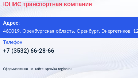 ЮНИС, транспортная компания по адресу 460019, Оренбургская область, Оренбург, Энергетиков, 12 в дальнейшем Организация, размещена в следующих категориях:
