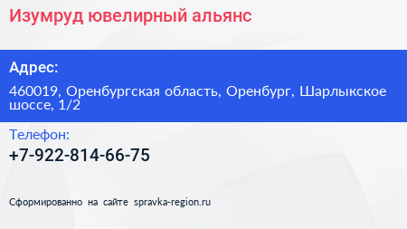 Изумруд, ювелирный альянс по адресу 460019, Оренбургская область, Оренбург, Шарлыкское шоссе, 1/2 в дальнейшем Организация, размещена в следующих категориях:
