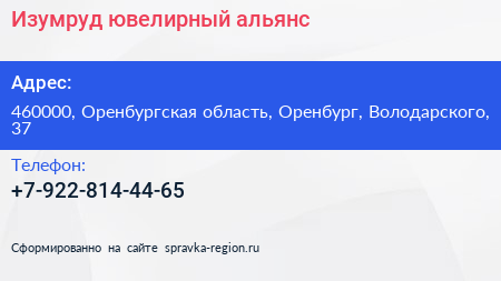 Изумруд, ювелирный альянс по адресу 460000, Оренбургская область, Оренбург, Володарского, 37 в дальнейшем Организация, размещена в следующих категориях:
