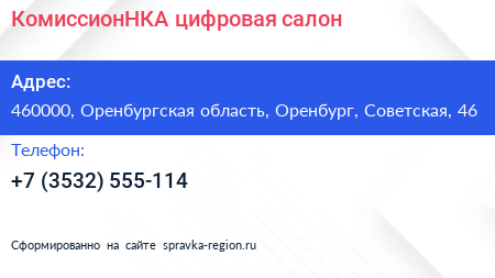 КомиссионНКА цифровая, салон по адресу 460000, Оренбургская область, Оренбург, Советская, 46 в дальнейшем Организация, размещена в следующих категориях: